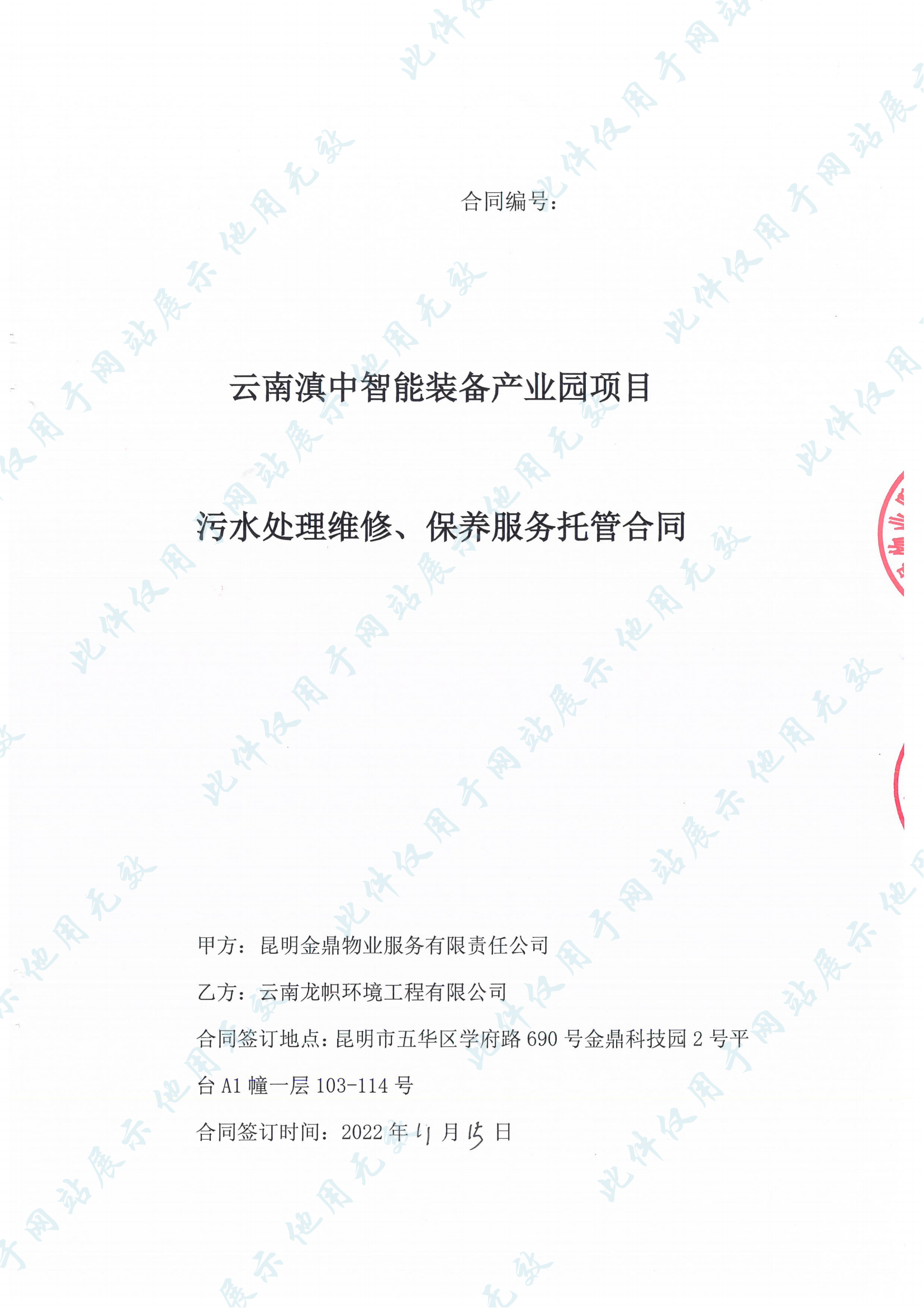 1.云南滇中智能制造產(chǎn)業(yè)園項目污水處理維修保養(yǎng)服務(wù)托管